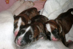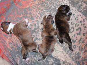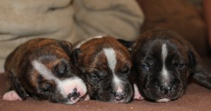 narodila 3 krásná zdravá štěňátka - 1 holčička a 2 kluci. Všichni, včetně maminky, jsou v pořádku a mají se čile k světu. Kluci vážili 350 g a holčička 300 g. Ještě jednou Fíbí a jejím páníčkům moc gratulujeme!!! Na fotce jsou zleva dva kluci a holčička je ta vpravo