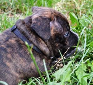 ....tomu se venku moc nelíbilo, nejraději by zůstal doma v pelíšku. Celý pobyt venku pokňourával a chodit po trávě se mu vůbec nechtělo