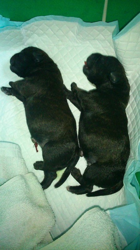 dnes císařským řezem porodila 2 nádherné, trochu prožíhané, pejsky. Oba jsou pěkní buřtíci - jeden vážil 397g a druhý 401 g. Šikovné mamince přejeme brzké uzdravení, hodně mlíčka pro ty své veliké bumbrdlíčky a všem hlavně hodně zdraví!!! Tatínek Gass i jeho páníčkové jsou moc hrdí a šťastní, že jsou všichni v pořádku!!!
